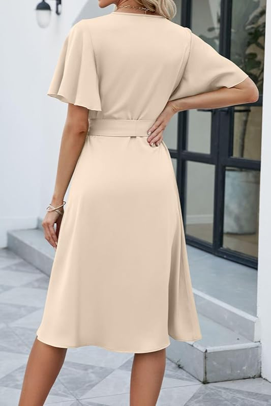 - Robe portefeuille satinée : Pour les occasions formelles ou les soirées, le satin ajoute une touche de luxe à votre tenue.
