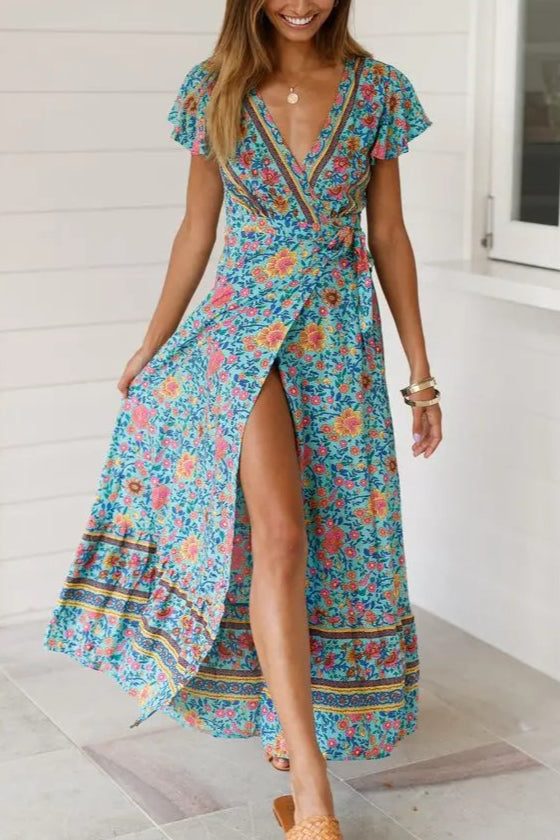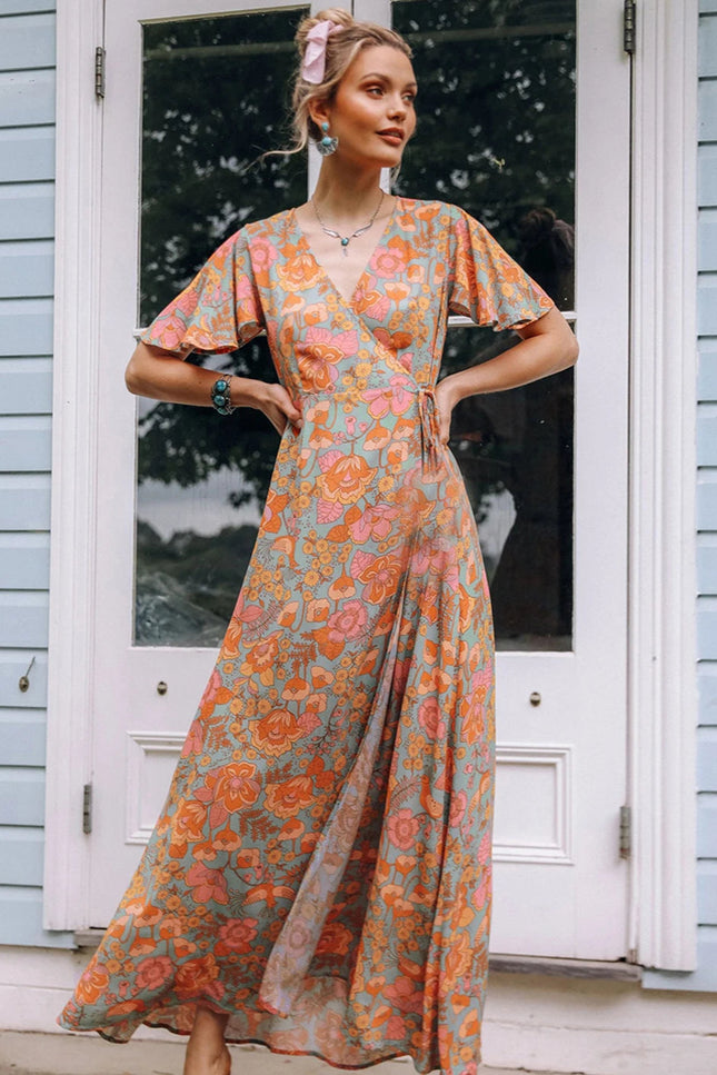 - Robe portefeuille longue : Élégante et sophistiquée, elle est parfaite pour un mariage ou une soirée chic.