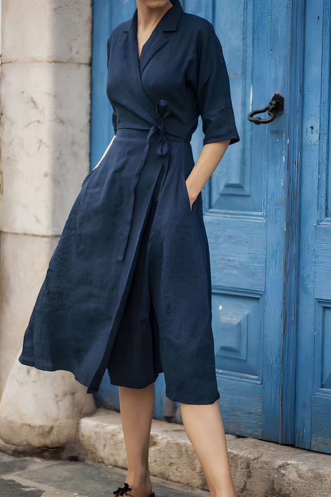 - Robe portefeuille en lin : Parfaite pour l’été, la robe en lin est respirante et idéale pour les journées chaudes.