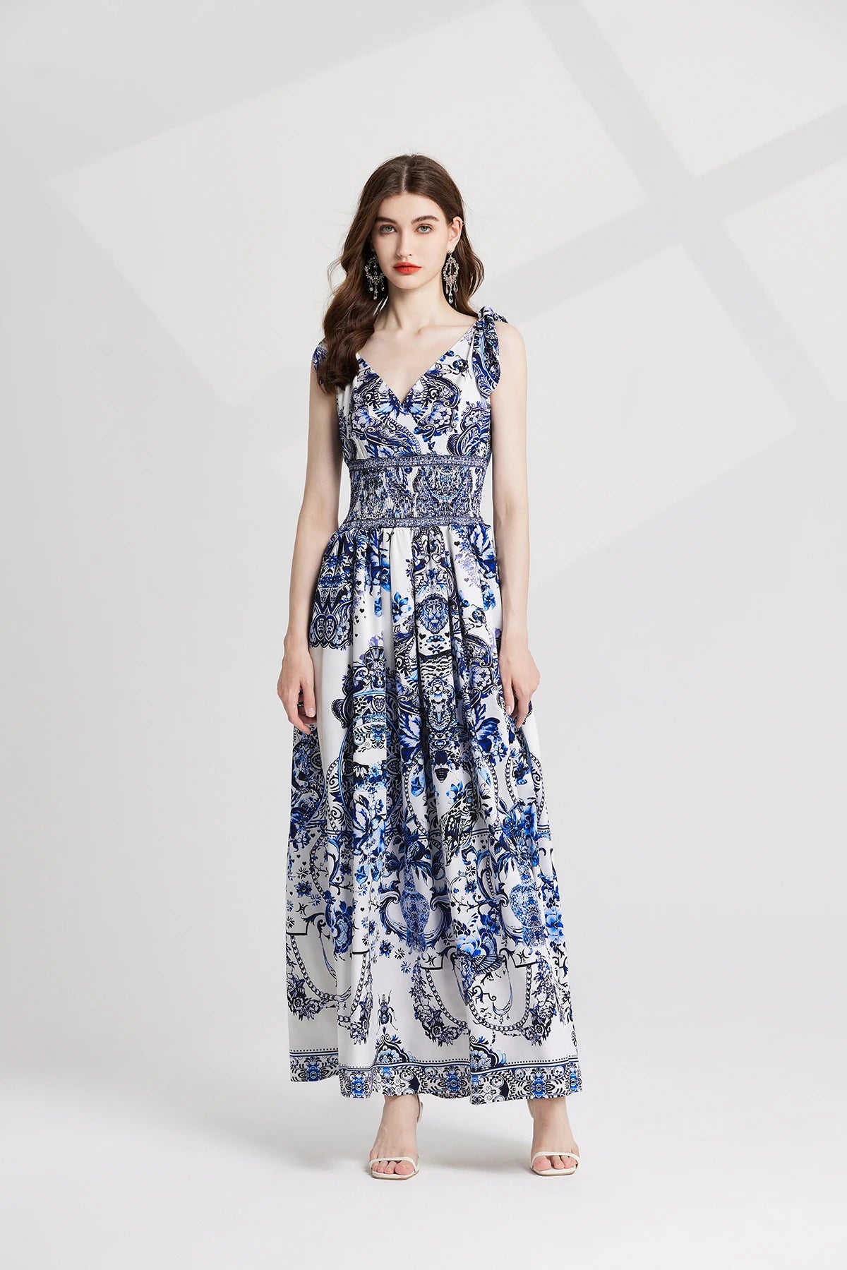 Adopte la Robe blanche motif bleu et deviens la reine de la soirée