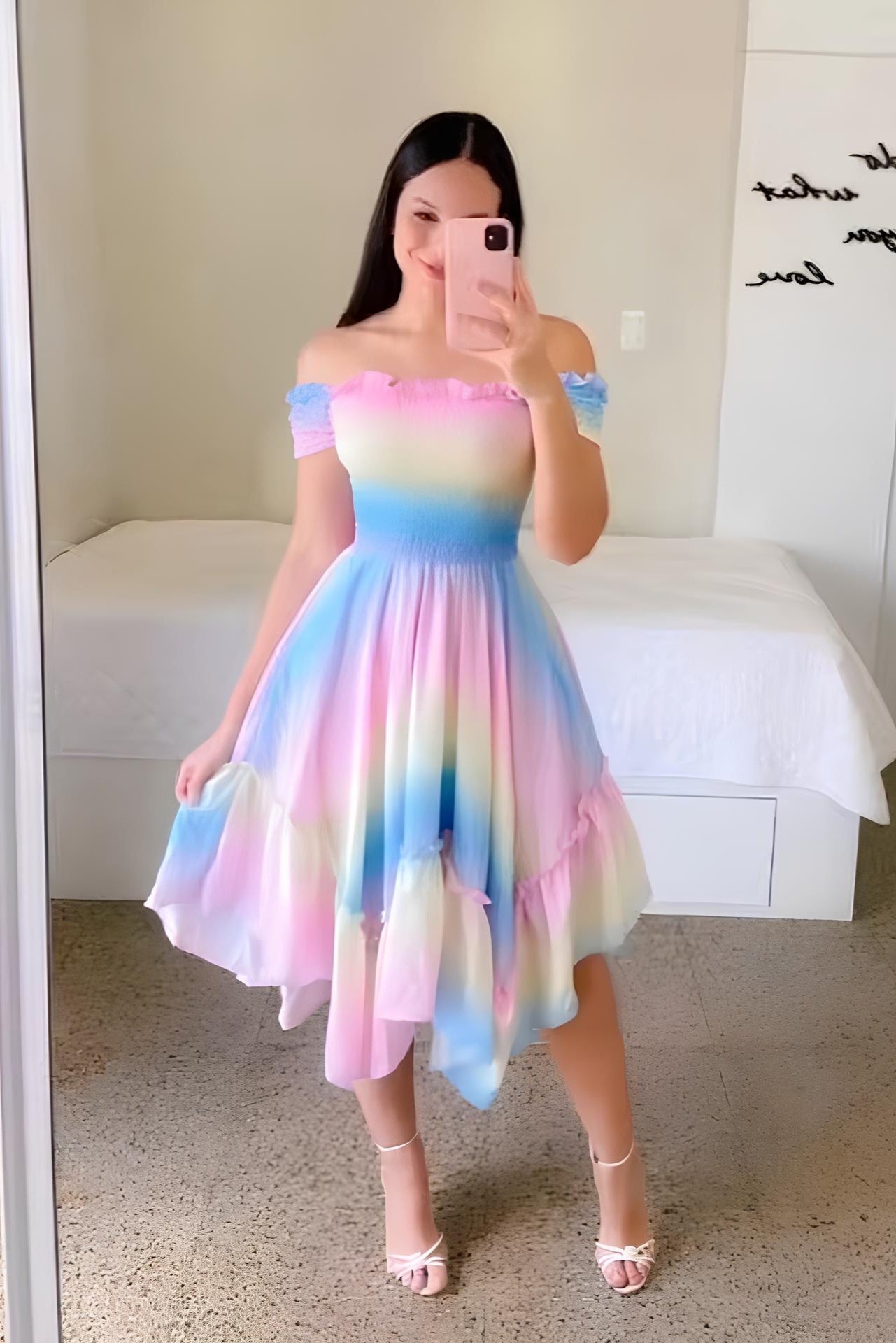 Que tu sois à un cocktail chic, à une soirée entre amis ou à un rendez-vous romantique, cette robe bleue et rose est le choix parfait pour toutes les occasions où tu veux te sentir spéciale.