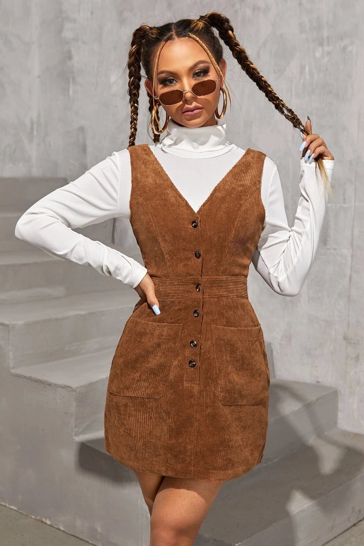 - 👗 Un style unique : Cette robe chasuble chic te permet d'affirmer ton style avec élégance et originalité.