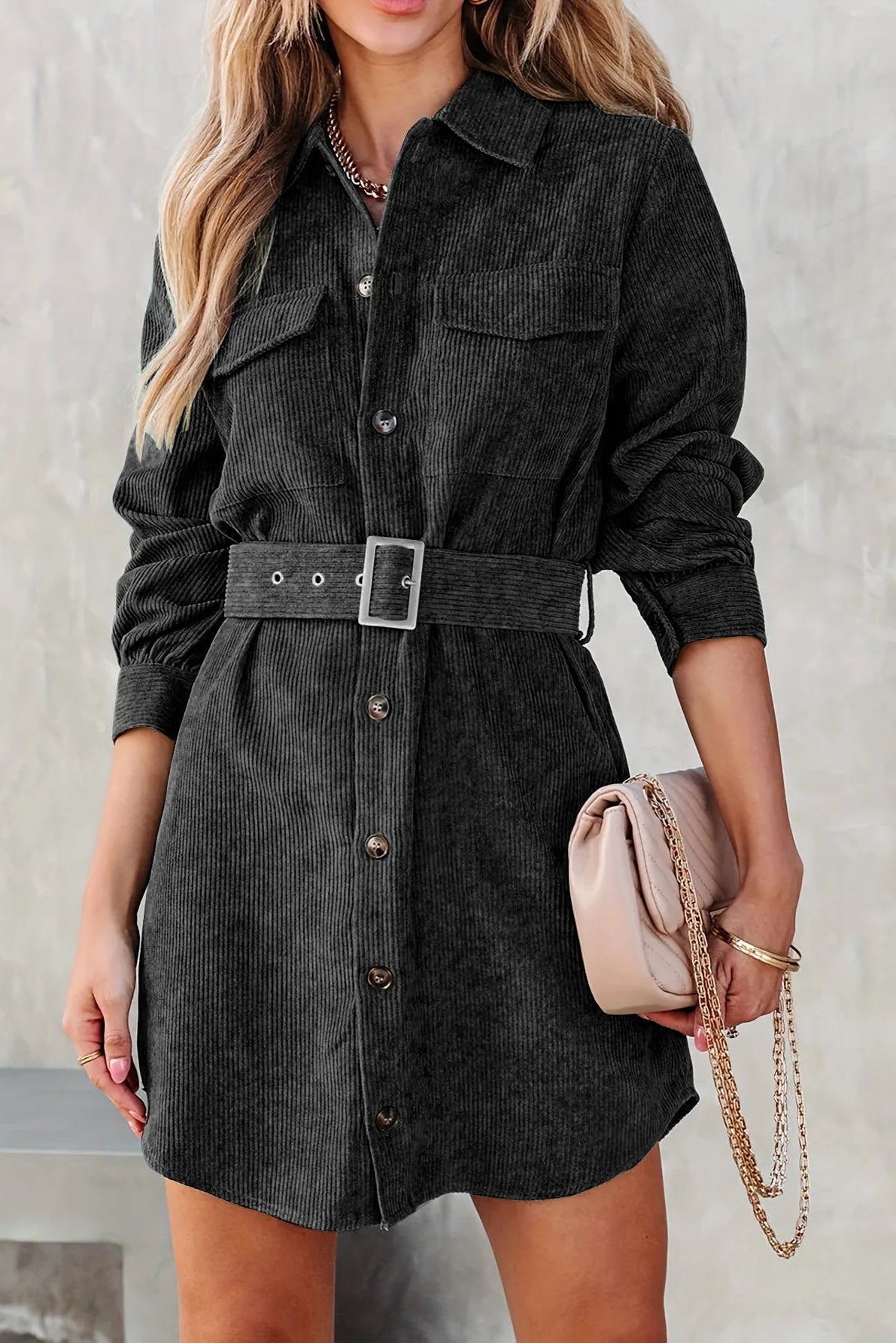 - 👑 Un look royal : La robe chemise en velours cotelé te donne une allure de reine moderne, prête à conquérir le monde.