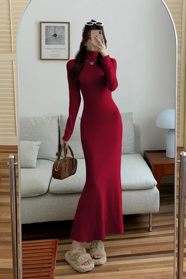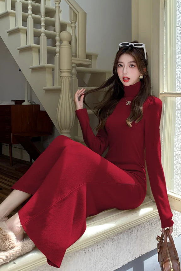 Devient la Reine de la soirée avec notre Robe col roulé rouge