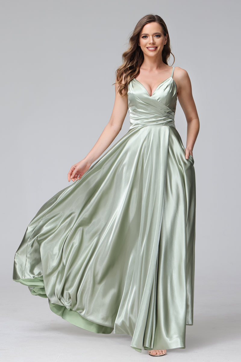 Imagine-toi entrant dans une salle de bal, Robe de soirée vert sauge flottant autour de toi comme une aura de mystère et d'élégance. Les regards se tournent, les murmures s'élèvent. Tu es l'étoile de la soirée, la reine du bal, l'incarnation de la grâce et du style.
