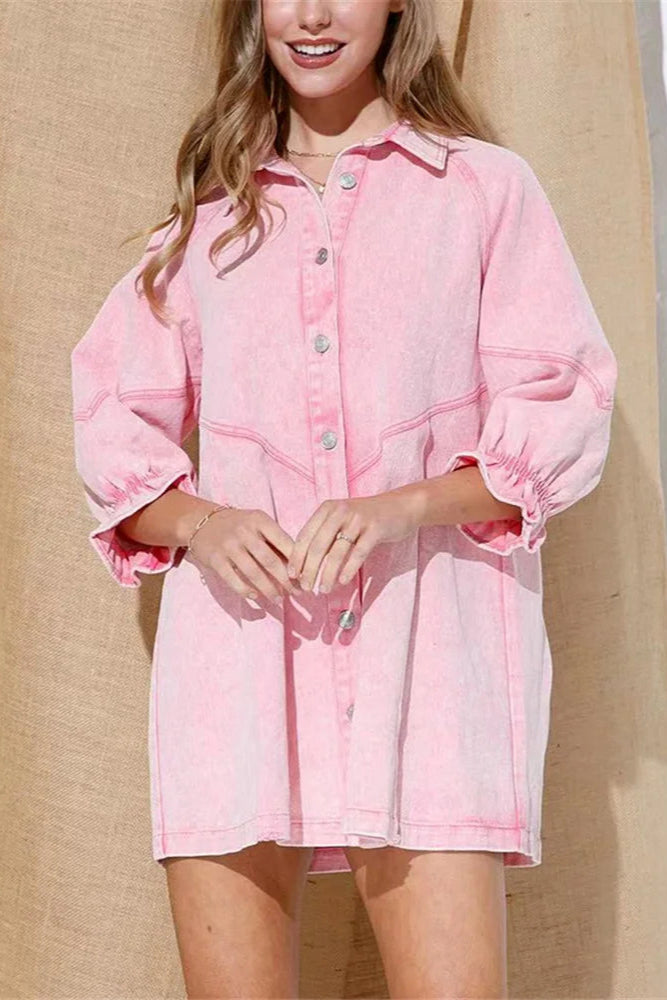 Imagine-toi, une belle journée ensoleillée, un rendez-vous à l'horizon et cette sensation de ne pas savoir quoi porter... Ne cherche plus ! La Robe jean rose est la pièce qu'il te faut. Elle est l'alliée parfaite pour te sentir à la fois chic et décontractée, sans jamais compromettre ton style.