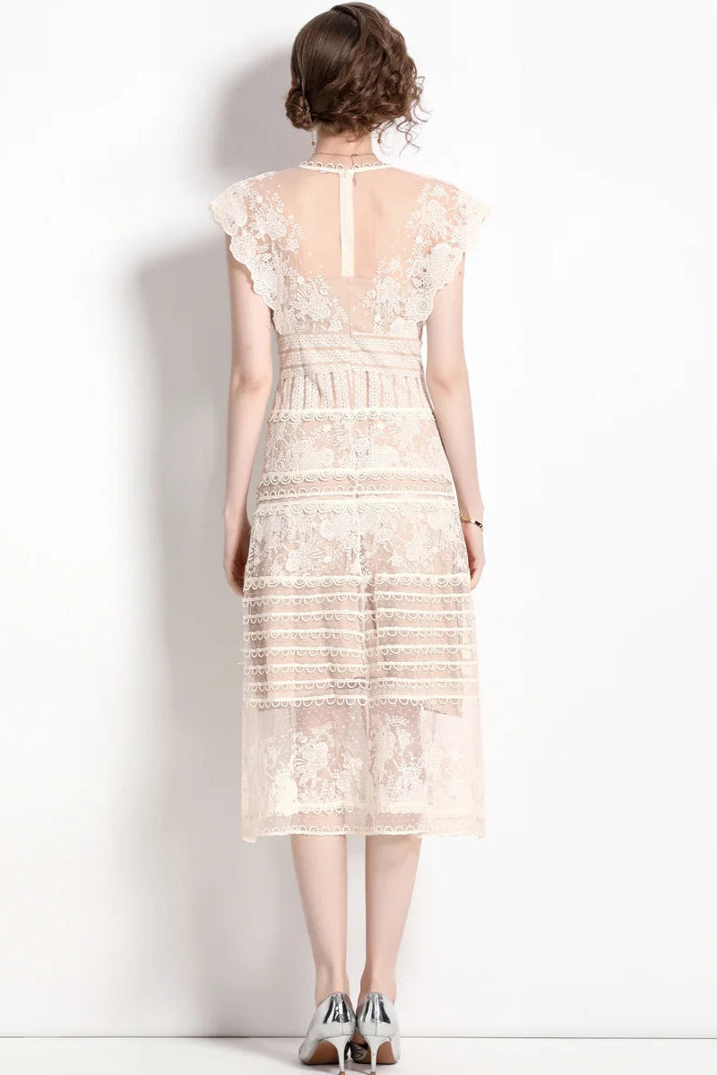 Transforme-toi en déesse bohème avec notre Robe longue dentelle beige