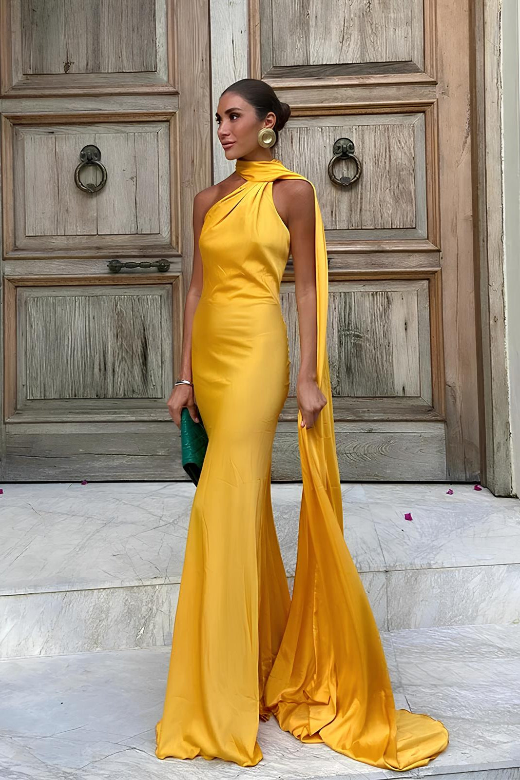 🌟 Fais-toi rayonner avec la Robe longue satin jaune, ton nouveau coup de cœur fashion ! 🌟