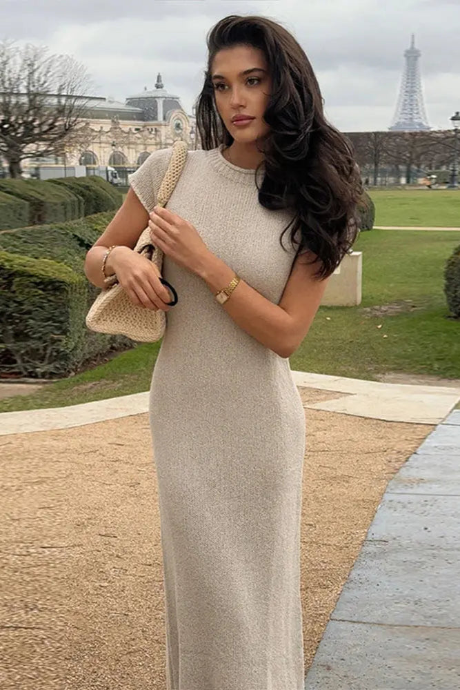 Embrasse l'élégance avec la Robe Maille Crème, la pièce indispensable de ton dressing !