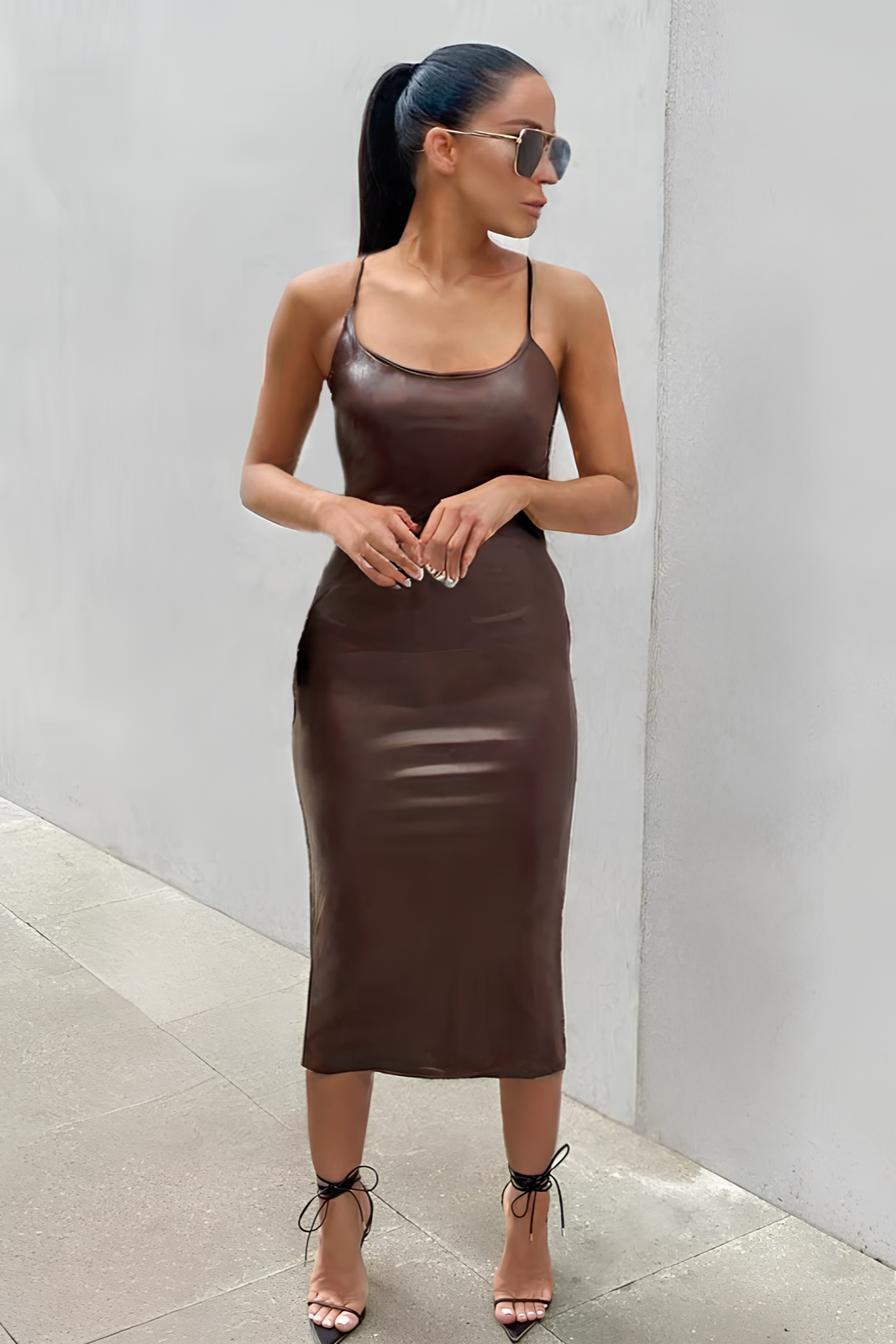 🌟 Avec la Robe moulante cuir, sois l'étoile qui brille le plus dans la nuit ! 🌟