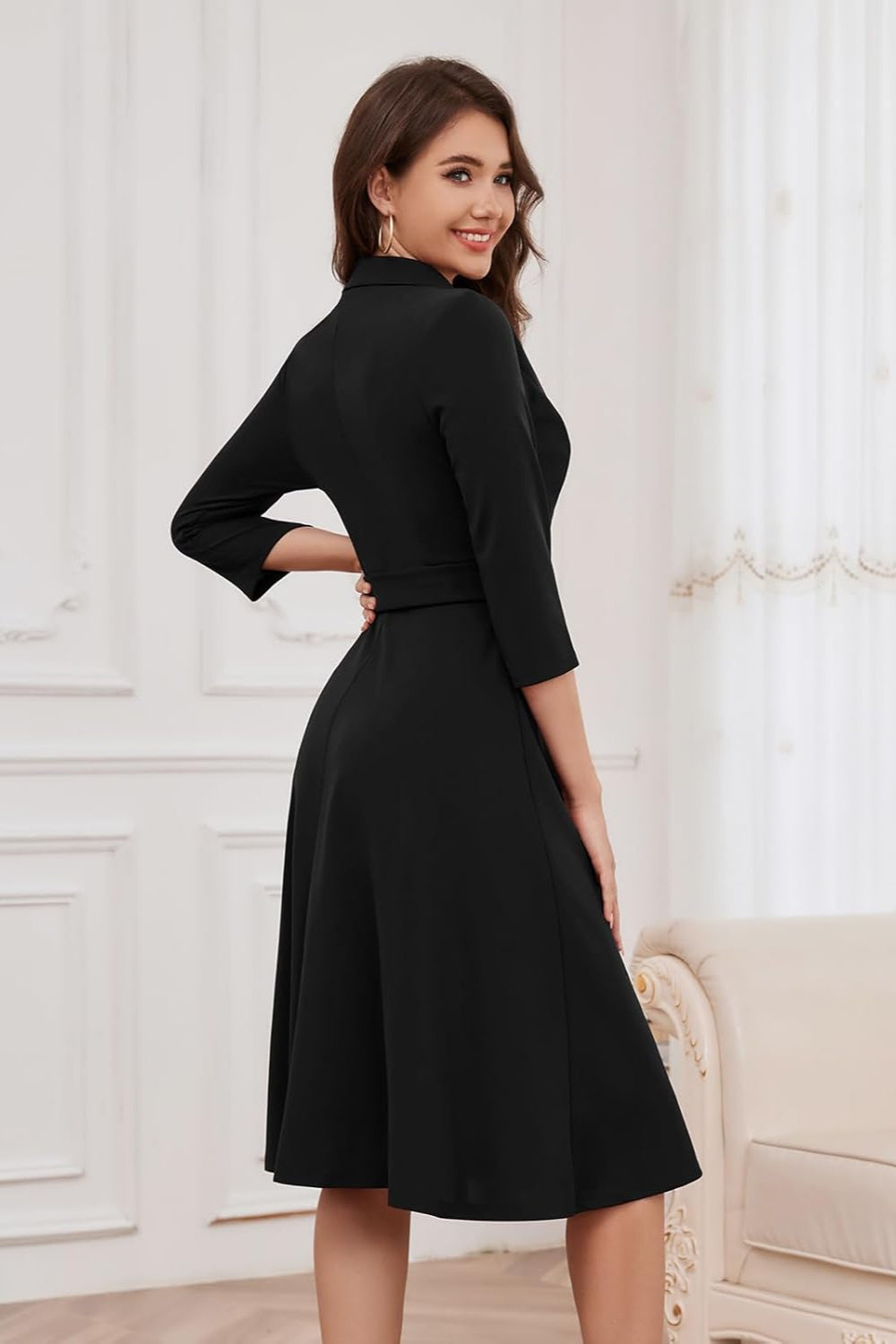 Imagine-toi entrant dans une pièce, portant notre Robe noire portefeuille. Les têtes se tournent, les regards sont captivés. Tu es une vision de sophistication et de style. Cette robe n'est pas seulement un vêtement, c'est une déclaration de mode.